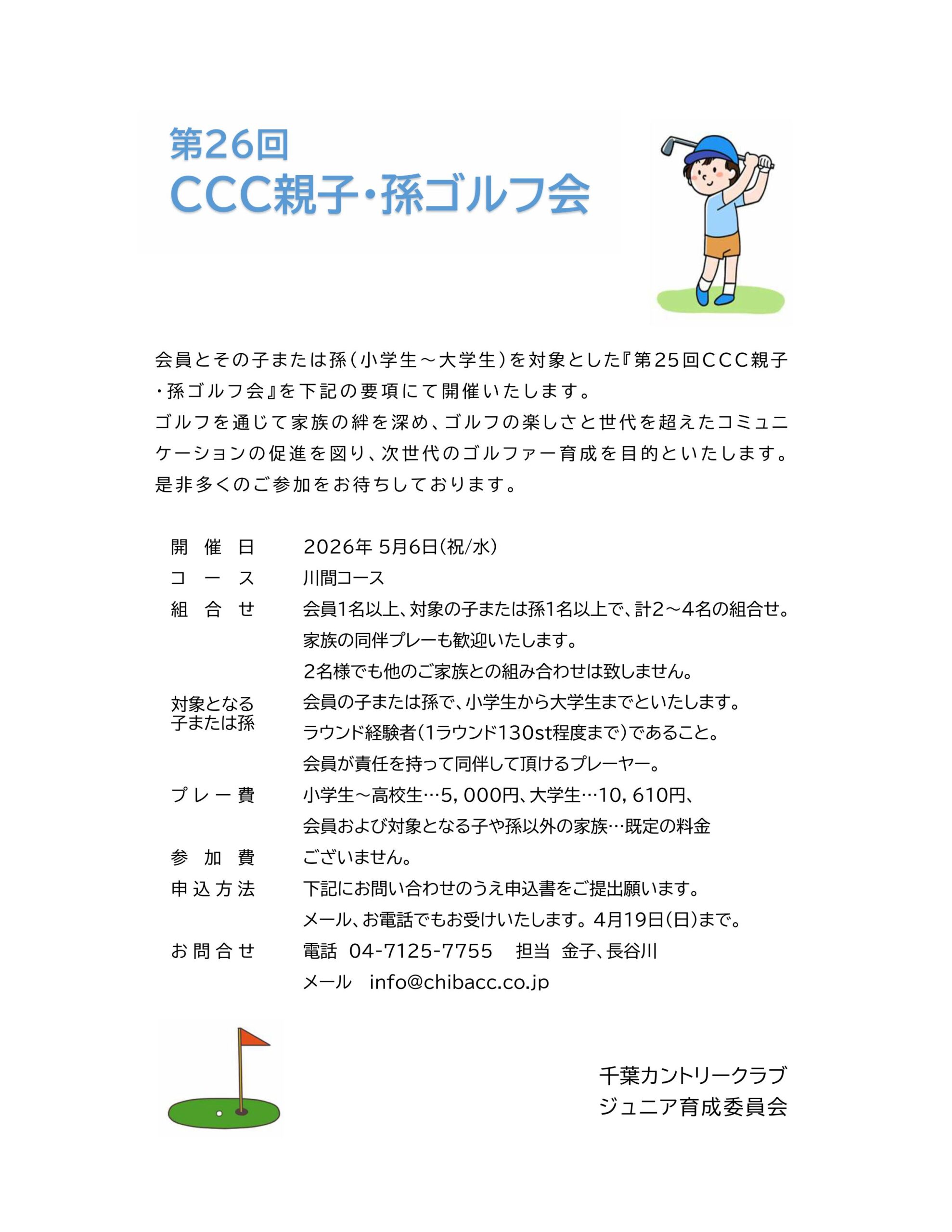 第26回 CCC親子・孫ゴルフ会 開催のご案内