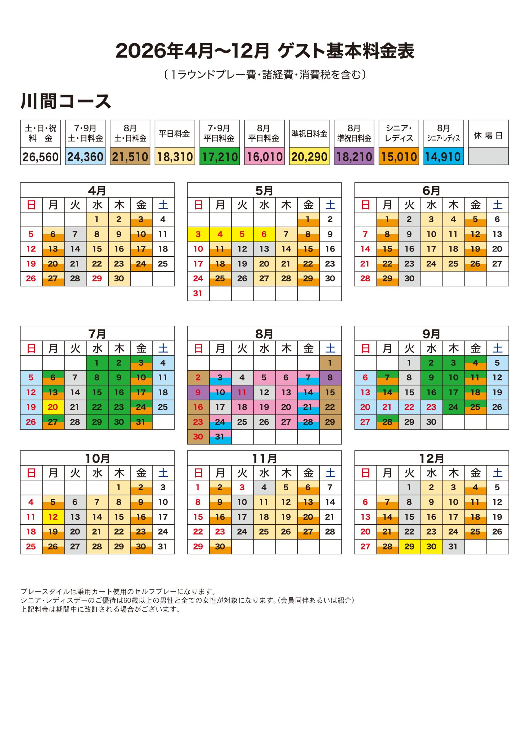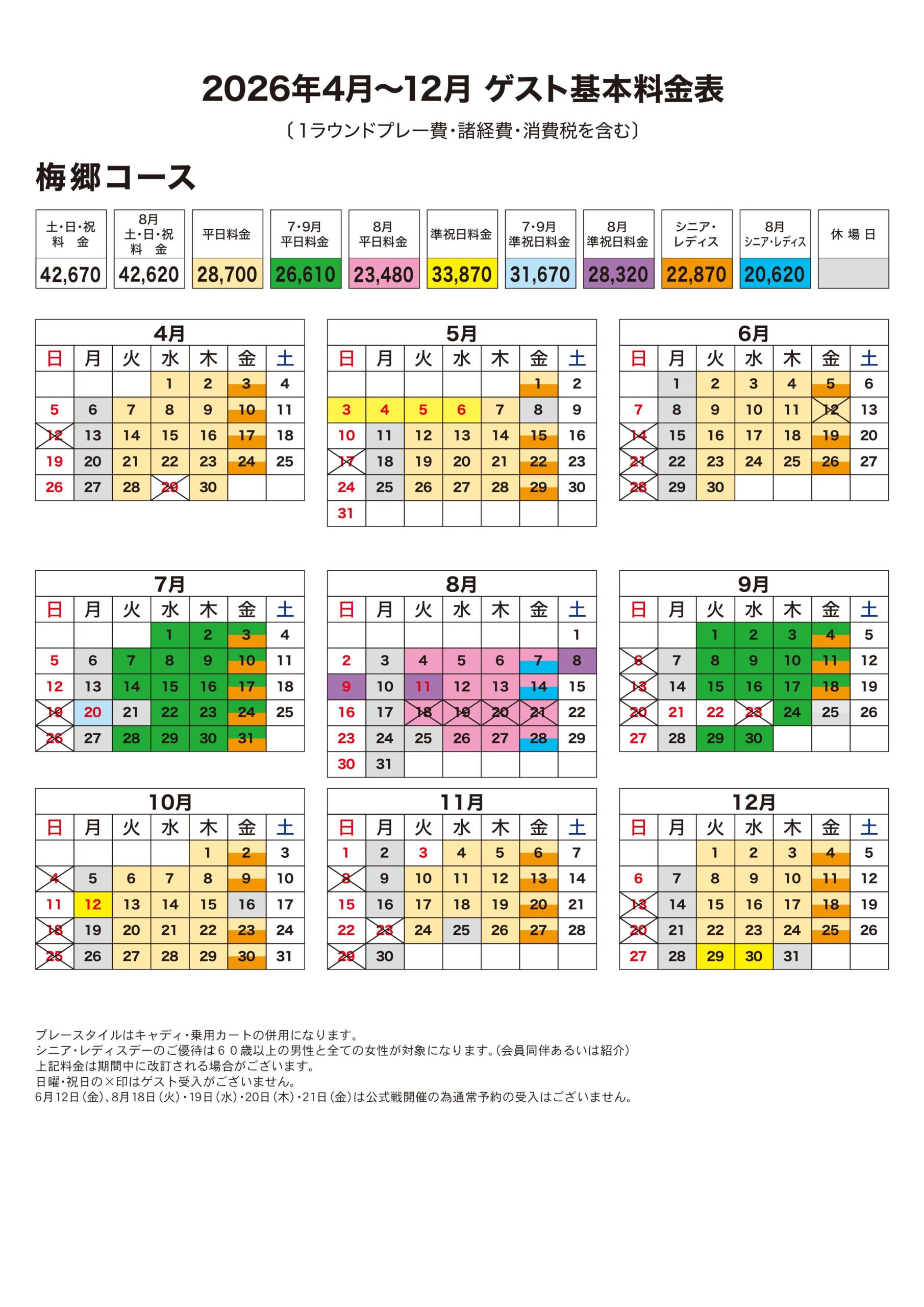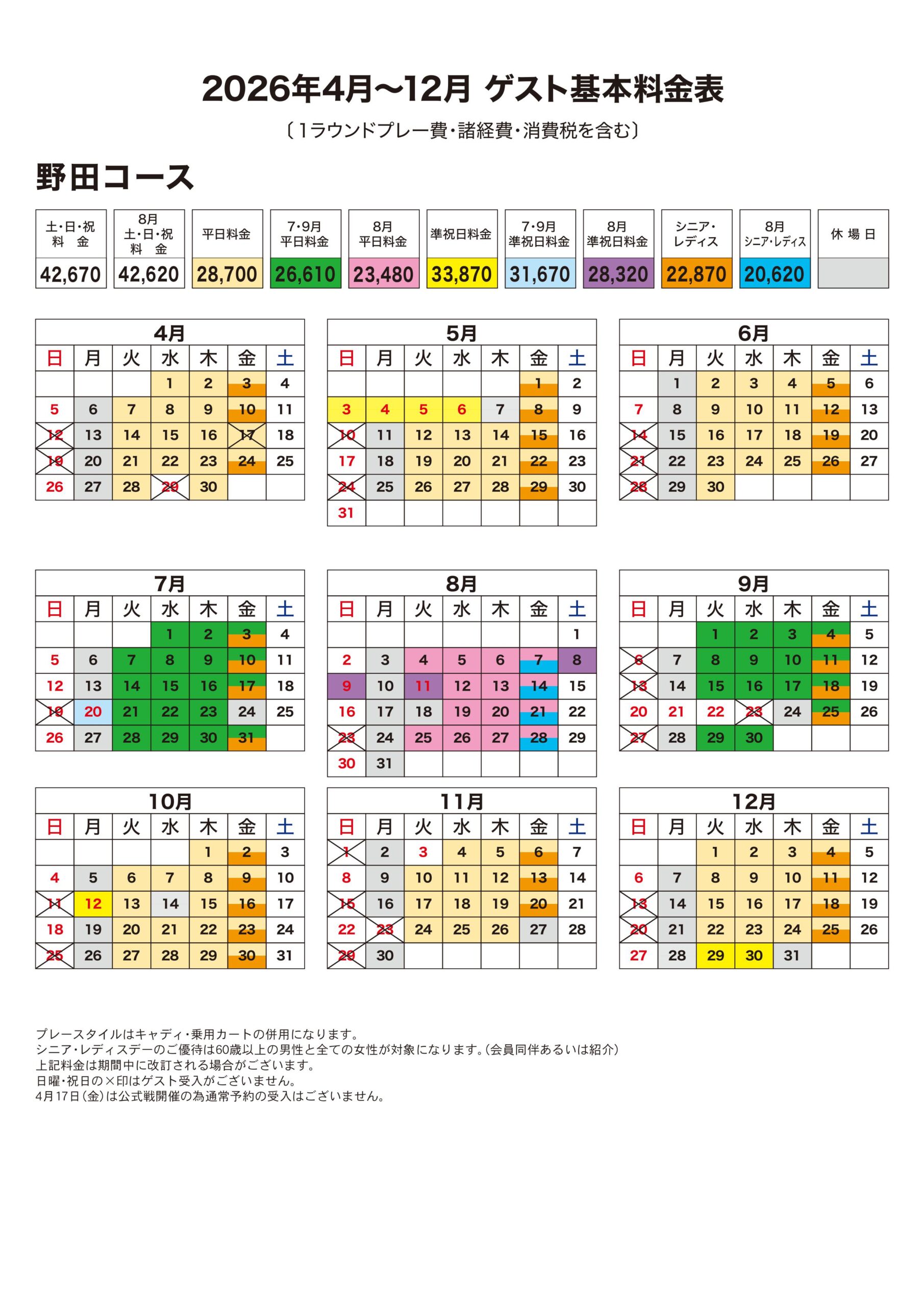 プレー月3ヶ月前の第1水曜日の14:00よりお受け致します。